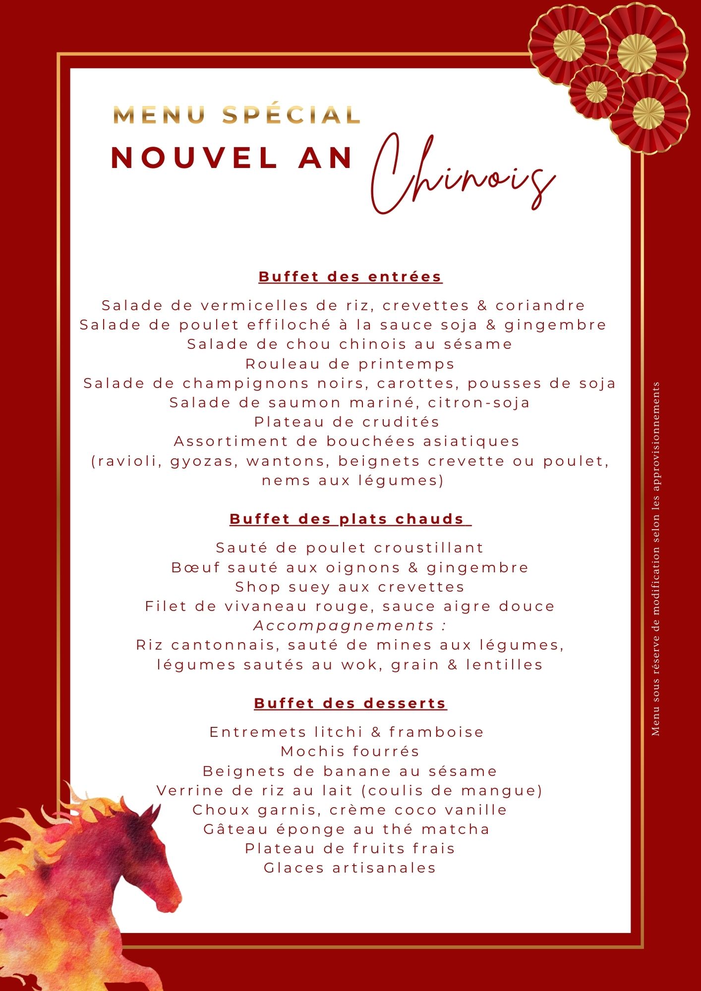 Venez partager un moment convivial en famille ou entre amis, et commencez l’année sous le signe du Cheval de Feu avec nous !